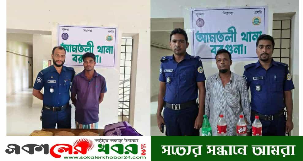 আমতলী(বরগুনা)প্রতিনিধিঃ বরগুনার আমতলীতে ৪ লিটার চোলাই মদসহ মো: আব্দুল আজিজ প্যাদা (৪৫)কে ও ০৩ কেজি গাজাসহ মো: আমিরুল মাদবর (৩৫)কে গ্রেফতার করেছেন আমতলী থানা পুলিশ।আমতলী থানা সূত্রে জানা যায় মো: আব্দুল আজিজ প্যাদা (৪৫)পিতা মৃত সুরত আলী প্যাদা সাং-রজপাড়া ২নং ওয়ার্ড, টিয়াখালী ইউপি,থানা-কলাপাড়া জেলা পটুয়াখালীকে বুধবার রাত ০৯:৩০ এর সময় আমতলী পৌরসভাধীন ৪ নং ওয়ার্ডের কেন্দ্রীয় দূর্গা মন্দিরের পূর্ব পাশে পাকা রাস্তার উপর থেকে ৪ লিটার চোলাই মদসহ গ্রেফতার করা হয়েছে।তার বিরুদ্ধে আমতলী থানায় মাদকদ্রব্য নিয়ন্ত্রনে মামলা দায়ের করা হয়েছে ।অপরদিকে ০৩ কেজি গাঁজাসহ মো: আমিরুল মাদবর (৩৫)কে আঠারগাছিয়া