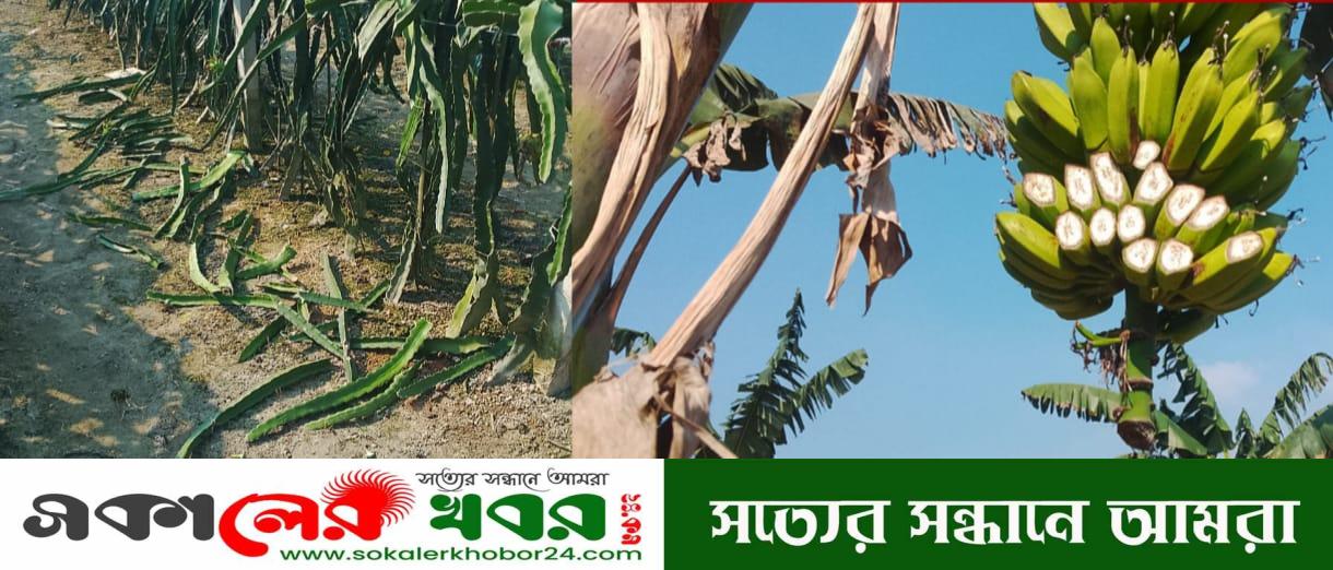 সরজমিনে দেখা যায়, কৃষক শামীম আহমেদ তার বাড়ির পাশেই তিন বিঘা জমিতে প্রায় চার শতাধিক কলা গাছ ও এক এক বিঘা জমিতে ড্রাগন চাষ করেছিলেন। ড্রাগন এবং কলা গাছে প্রচুর পরিমাণে ফলন এসেছে। আর কিছুদিন পরই কলা ও ড্রাগন বাজারজাত করার কথা ছিল তার। কিন্তু রাতের আঁধারে বাগানের শতাধিক কলা ও ড্রাগন গাছ কেটে দেওয়ায় কমপক্ষে চার লক্ষ টাকার ক্ষতি সাধন করে দুর্বৃত্তরা। এছাড়াও তার উস্তের বানেও প্রচুর ক্ষতি সাধন করে।