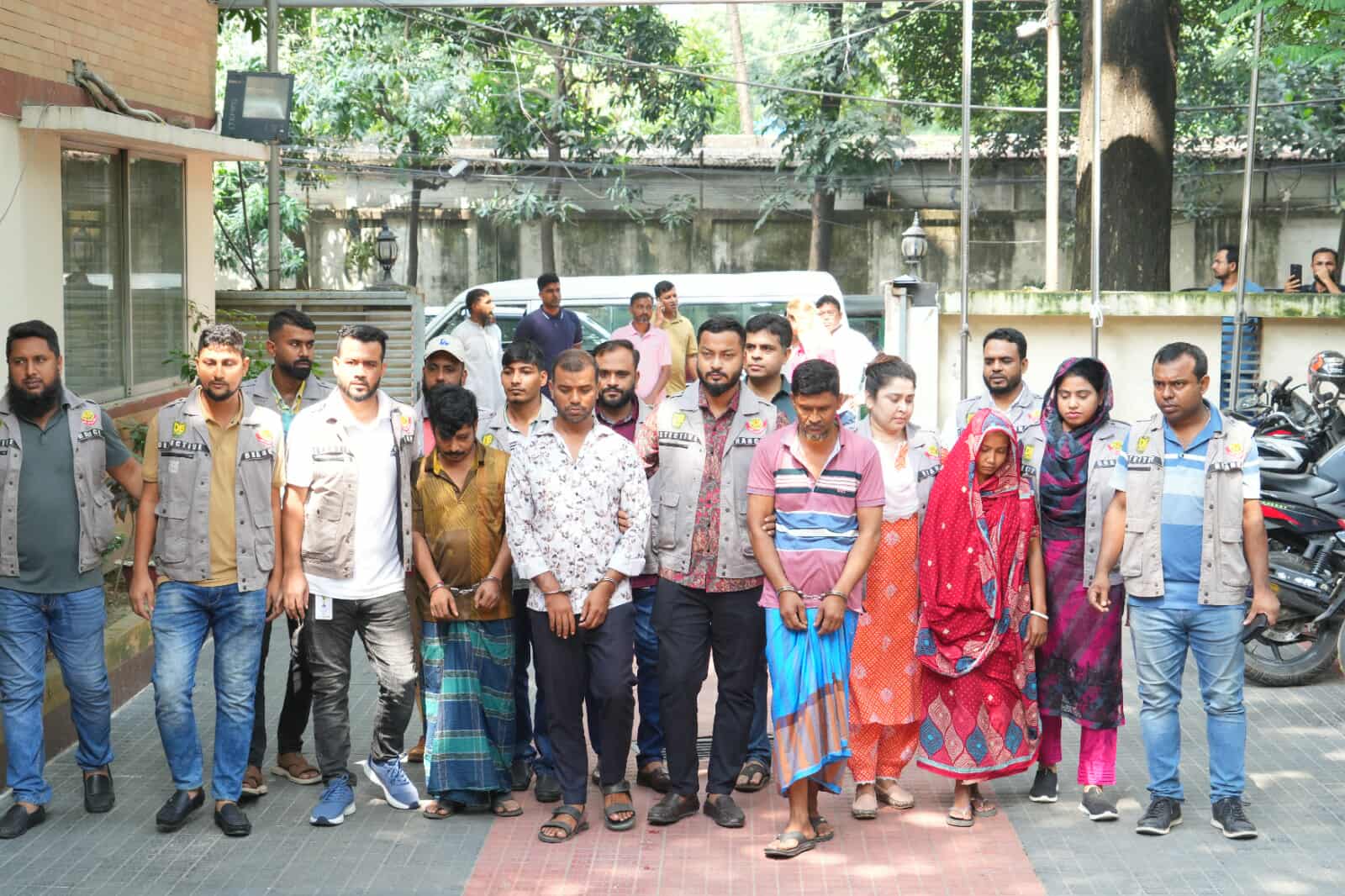 গ্রেফতারকৃতরা হলো— শাহিন মাতব্বর ওরফে শাহিন, নুরুল ইসলাম, উত্তম চন্দ্র সূর ও অনিতা রায়।