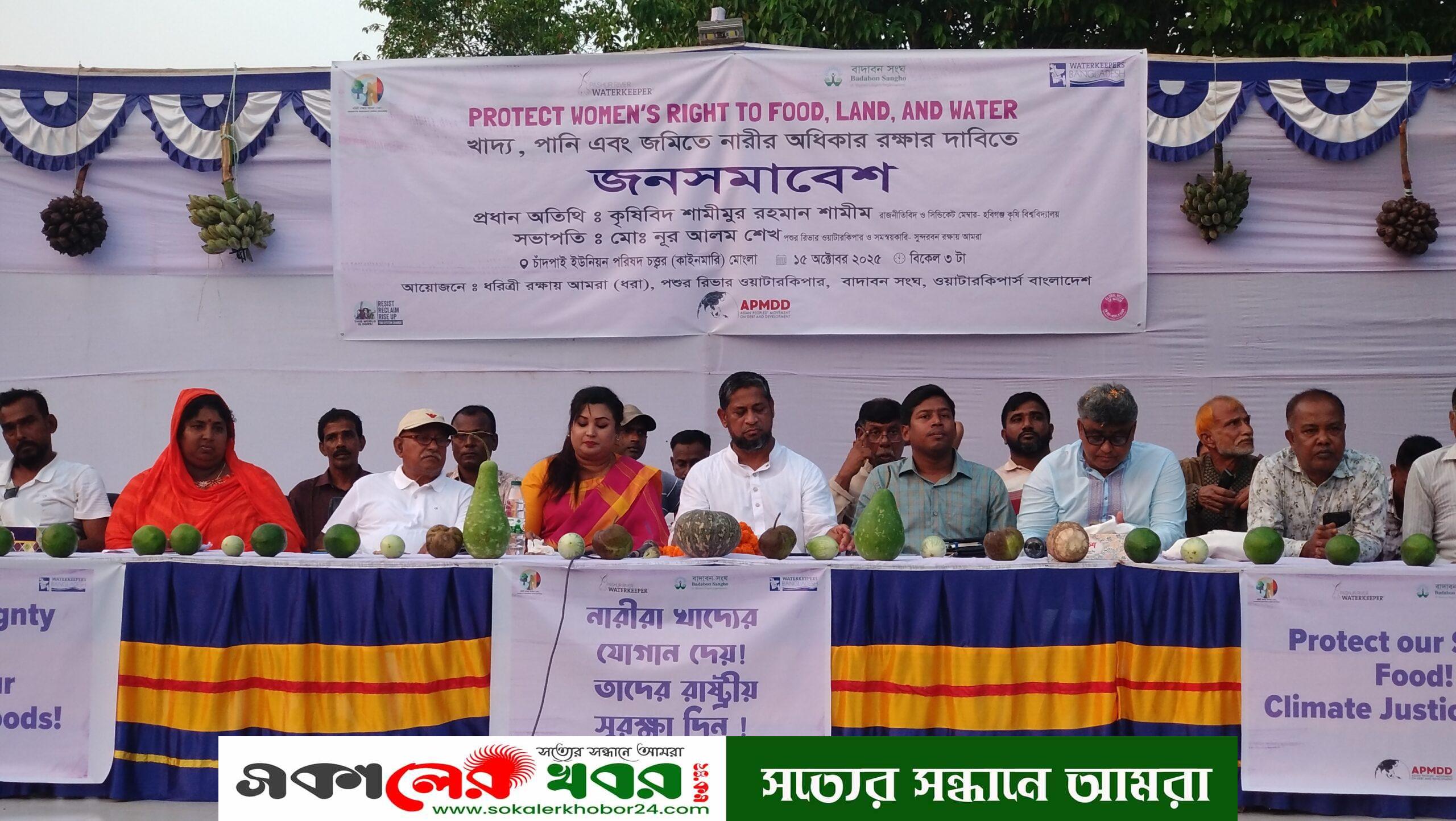 উপকূলীয় নারী, বনজীবী, মৎস্যজীবী, ভূমিহীন, জলবায়ু উদ্বাস্তুসহ নানা শ্রেণীপেশার মানুষের অংশগ্রহণে খাদ্য, পানি এবং জমিতে নারীর অধিকার রক্ষার দাবিতে এ জনসমাবেশ অনুষ্ঠিত হয়। ধরিত্রী রক্ষায় আমরা (ধরা), ওয়াটারকিপার্স বাংলাদেশ, বাদাবন সংঘ ও পশুর রিভার ওয়াটারকিপার এ জনসমাবেশের আয়োজন করে।বুধবার বিকেল ৩টায় অনুষ্ঠিত জনসমাবেশে সভাপতিত্ব করেন সুন্দরবন রক্ষায় আমরা’র সমন্বয়কারী পশুর রিভার ওয়াটারকিপার পরিবেশযোদ্ধা মোঃ নূর আলম শেখ। জনসমাবেশে বিশেষ অতিথির বক্তৃতা করেন উপজেলা কৃষি অফিসার প্রশান্ত কুমার হাওলাদার, বীর মুক্তিযোদ্ধা শেখ আবু হানিফ, সুন্দরবন জাদুঘরের পরিচালক সুভাষ চন্দ্র বিশ্বাষ, বিএনপি নেতা এমরান হোসেন, বিশিষ্ট মৎস্য ব্যবসায়ী মোঃ শাহ্ আলম শেখ ও নারীনেত্রী শামীমা আক্তার লাইজু। প্রধান অতিথির বক্তৃতায় হবিগঞ্জ কৃষি বিশ্ববিদ্যালয়ের সিন্ডিকেট মেম্বার কৃষিবিদ শামীমুর রহমান শামীম আরো বলেন জলবায়ু পরিবর্তনের ফলে লবণাক্ততা বৃদ্ধির ফলে উপকূলের ৬৪% মানুষ নিরাপদ খাবার পানি থেকে বঞ্চিত। লবণাক্ততা বেড়ে যাওয়ায় কৃষি উৎপাদন ও মৎস্য চাষে বিপর্যয় নেমে এসেছে। প্রাণ-প্রকৃতি সুরক্ষায় জলবায়ু পরিবর্তন রোধে ন্যায্য জ্বালানি রূপান্তর ঘটাতে হবে। নবায়নযোগ্য জ্বালানিতে বিনিয়োগ বৃদ্ধি করতে হবে।