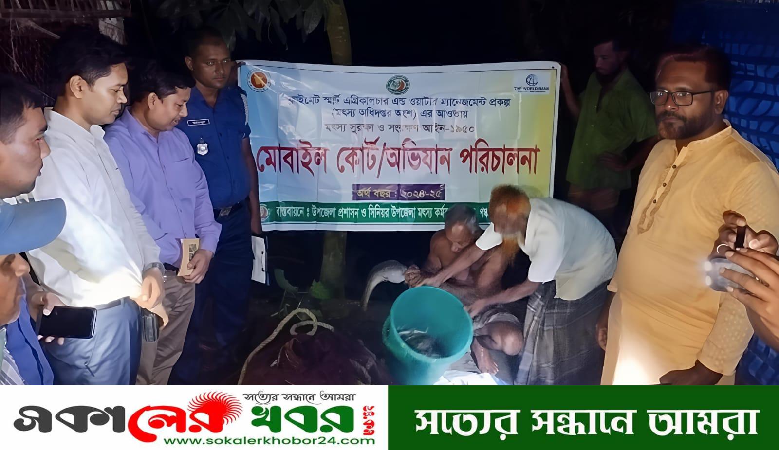 অভিযান চলাকালে পুকুর থেকে বিপুল পরিমাণ নিষিদ্ধ আফ্রিকান মাগুর মাছ জব্দ করা হয়। এ সময় অভিযুক্ত শহিদুল ইসলামকে মৎস্য সুরক্ষা ও সংরক্ষণ আইন, ১৯৫০-এর ৫ ধারায় অপরাধ স্বীকারের পর ৬৭ ধারা অনুযায়ী ৩,০০০ (তিন হাজার) টাকা অর্থদণ্ডে দণ্ডিত করা হয়।