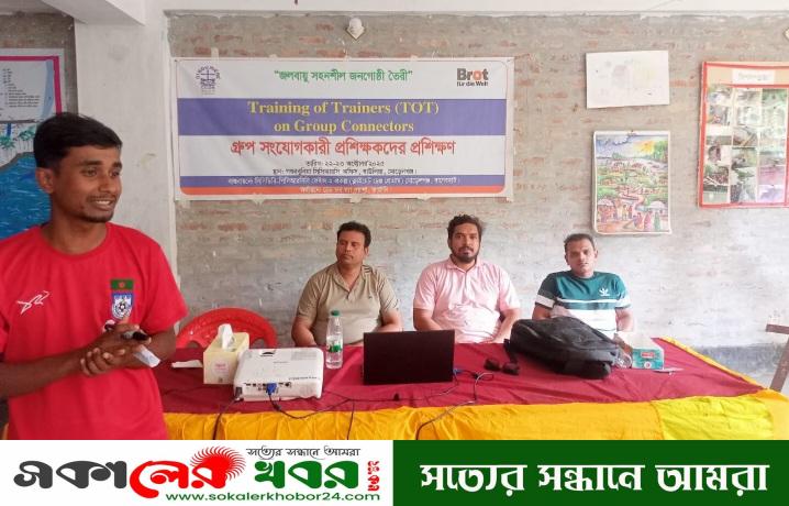 বাগেরহাটের মোরেলগঞ্জ উপজেলার খাউলিয়া ইউনিয়নের পশরবুনিয়া গ্রামে বেসরকারি উন্নয়ন সংস্থা সিসিডিবি’র উদ্যোগে দুই দিন ব্যাপি গ্রুপ সংযোগকারী প্রশিক্ষণ প্রদান করা হয়েছে।খাউলিয়া ইউনিয়নের পশরবুনিয়া গ্রামে গত বুধ ও বৃহস্পতিবার জলবায়ু সহনশীল জনগোষ্ঠী গঠনে গ্রুপের সংযোগকারী প্রশিক্ষকদের প্রশিক্ষণ অনুষ্ঠিত হয়েছে। জলবায়ু পরিবর্তনের বিরুপ প্রভাব মোকাবেলায় স্থানীয় জনসাধারণকে সক্ষম করে তোলার লক্ষে মোরেলগঞ্জ সিসিআরসি’র উদ্যোগে এবং সিসিডিবি’র বাস্তবায়ন ও সহযোগিতায় “গ্রুপের সংযোগকারী প্রশিক্ষকদের প্রশিক্ষণ” অনুষ্ঠিত হয়। প্রশিক্ষনে অংশ গ্রহণকারীদের জলবায়ু পরিবর্তনের প্রভাব, ঝুঁকি হ্রাস, অভিযোজন কৌশল এবং স্থানীয় পর্যায় সমন্বিত উদ্যোগ গ্রহণের বিষয় ধারনা প্রদান করা হয়েছে। অংশগ্রহনকারীরা অলোচনা, গ্রুপ ওয়ার্ক এবং ব্যবহারিক সেশনের মাধ্যমে শিখেছেন কীভাবে অর্জিত জ্ঞন ও দক্ষতা ব্যবহার করে নিজেদের এবং স্থানীয় জনগোষ্ঠীকে জলবায়ু পরিবর্তনের প্রভাব মোকাবেলায় প্রস্তুত করা যায়।