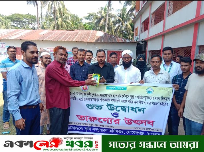 বৃহস্পতিবার (২৩ অক্টোবর) দুপুরে মোরেলগঞ্জ উপজেলা পরিষদ মাঠে উপ সহকারী কৃষি কর্মকর্তা আলী আশ্রাফ এর সঞ্চালনায় স্বাগত বক্তব্য রাখেন উপজেলা কৃষি অফিসার মো. সাইফুল ইসলাম।বিতরনী অনুষ্ঠানে প্রধান অতিথি হিসেবে উপস্থিত থেকে সবজির বীজ বিতরণ করেন উপজেলা নির্বাহী অফিসার হাবিবুল্লাহ।এ সময় অন্যান্যদের মধ্যে উপস্থিত ছিলেন উপজেলা প্রকৌশলী মো. আরিফুল ইসলাম, উপজেলা পরিবার পরিকল্পনা কর্মকর্তা (ভারপ্রাপ্ত) ডা. মো. তারেক হাসান, উপজেলা সিনিয়র মৎস্য কর্মকর্তা রনজিৎ কুমার, উপজেলা প্রানী সম্পদ কর্মকর্তা মো.রেজাউল করিম প্রমুখ।