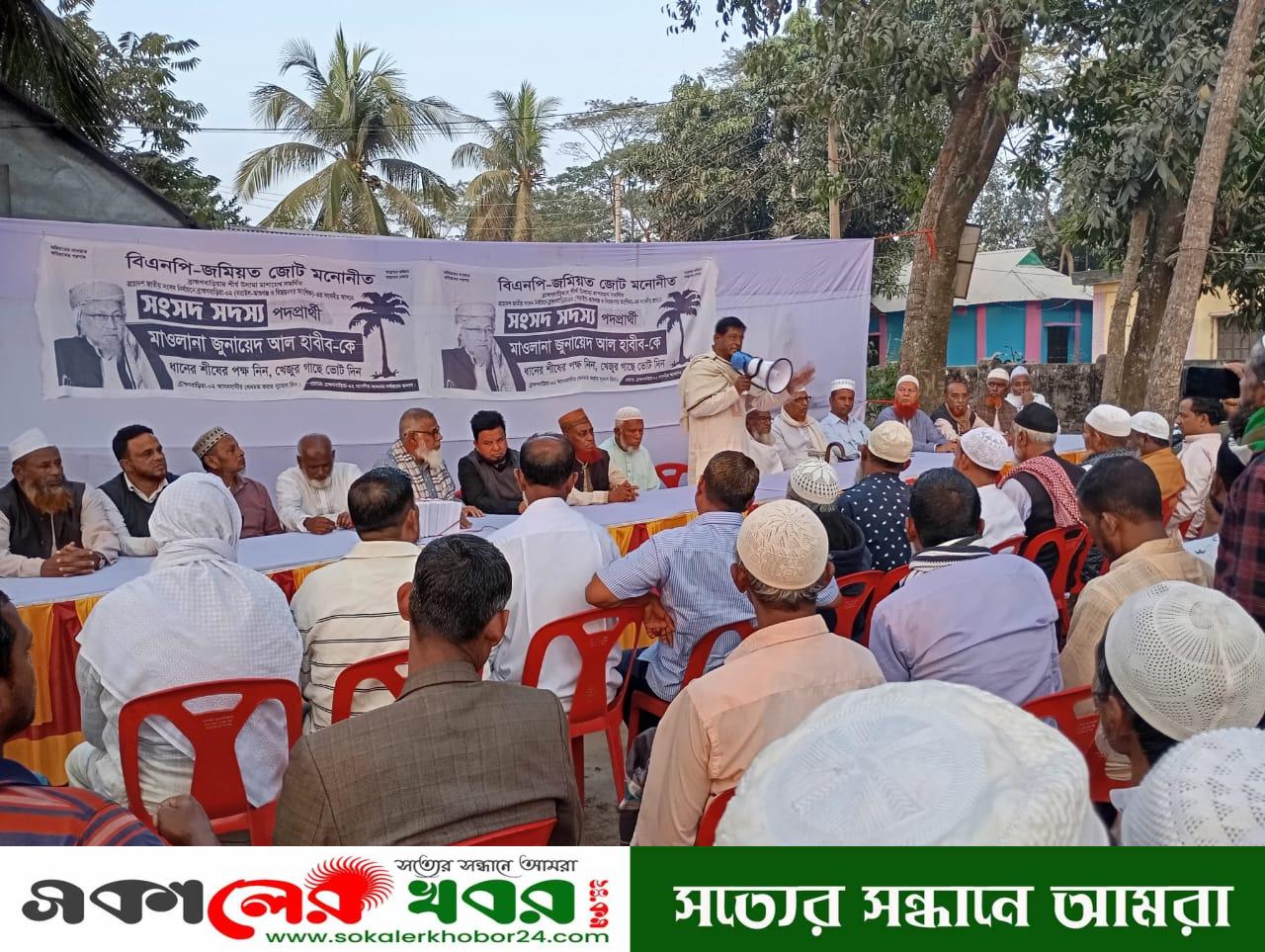 সরাইল উপজেলা প্রতিনিধি: আসন্ন ত্রয়োদশ জাতীয় সংসদ নির্বাচন উপলক্ষে ব্রাহ্মণবাড়িয়া-২ (সরাইল, আশুগঞ্জ ও বিজয়নগর আংশিক) আসনের সরাইল উপজেলা কুট্রাপাড়া গ্রামের ৯ নং ওয়ার্ডের বাংলাদেশ জাতীয়তাবাদী দল বিএনপি সমর্থিত জমিয়তে উলামায়ে ইসলাম বাংলাদেশের প্রার্থী মোহাম্মদ জুনায়েদ আল হাবিব এর সমর্থনে খেজুর গাছ প্রতীকের পক্ষে বুধবার (৪ ফেব্রুয়ারি) বিকেলে পরামর্শ সভা অনুষ্ঠিত হয়।