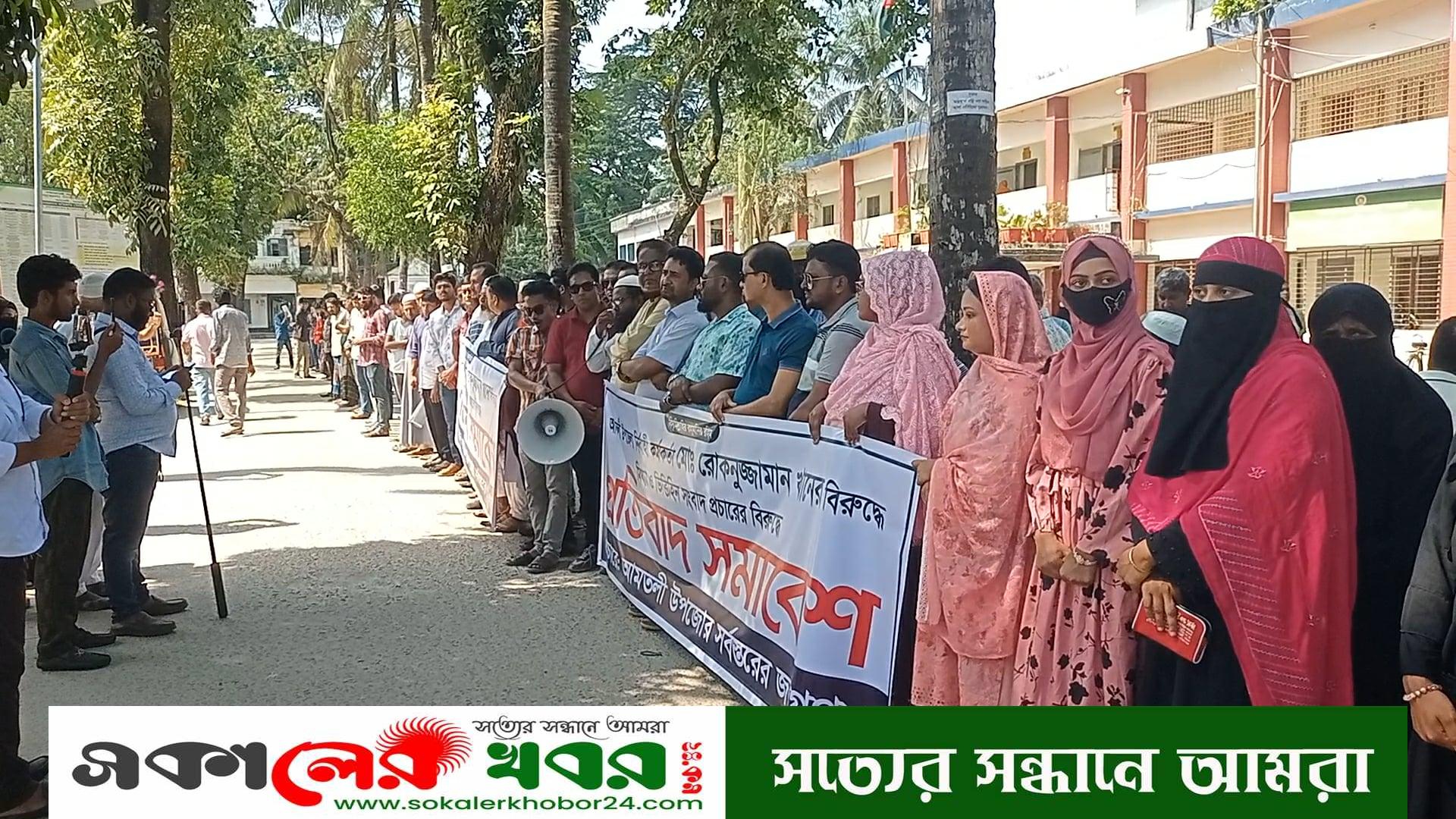 আমতলীর ইউএনও'র বিরুদ্ধে অপপ্রচারে বিভিন্ন রাজনৈতিক দলের প্রতিবাদ সমাবেশ | সকালের খবর ২৪